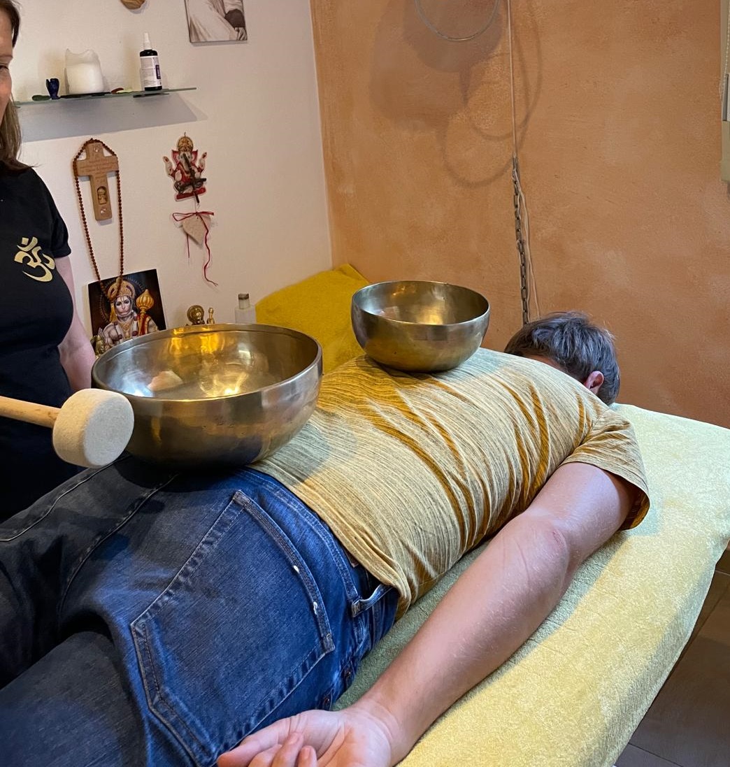 Bei einer Klangmassage werden unterschiedliche Klangschalen auf und um den bekleideten Körper gelegt und sanft angeklungen. Die wohltuenden Klänge beruhigen deinen Geist, die Vibrationen und Schwingungen der Klangschalen erzeugen in deinem Körper, der zu 80% aus Wasser besteht, harmonische und gleichmäßige Wellen. Dies kann zu einem tiefen Entspannungszustand führen und wirkt wie eine wohltuende Massage für deine Billionen von Zellen! Die "Massage" erfolgt über die Klangschalen, es wird nicht manuell gearbeitet.